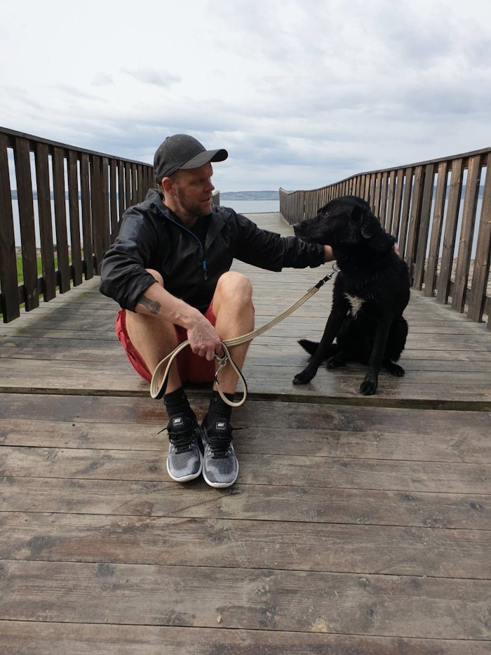(Jens og hunden Rambo på tur langs Mjøsa)