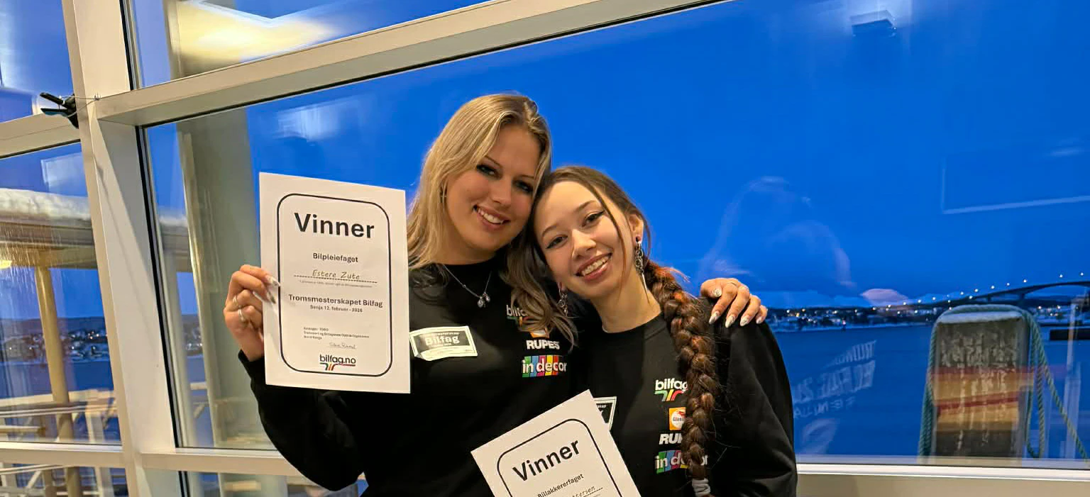 Begge to deltok sammen med fem andre fagarbeidere fra Harstad og kjempet mot deltakere fra Tromsø og Finnsnes om å få representere Troms under Yrkes-NM. Det endte veldig bra og jentene er sterkt representert i år. Estere og Jasmin gikk videre sammen med Erika Beddari som jobber som bilskadereparatør hos Stangnes Bilskade AS.